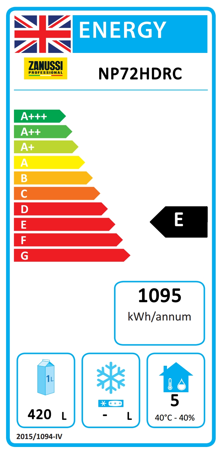 Armadio certificato di classe A in condizioni di lavoro pesante (40°C - 40% di umidità) secondo le direttive Europee di Ecodesign. Il risparmio energetico fino a 300 €/anno si ottiene confrontando i frigoriferi e freezer della classe G con quelli equivalenti della classe A (costo energetico di 0,21 €/kWh e volume netto di 503 lt).